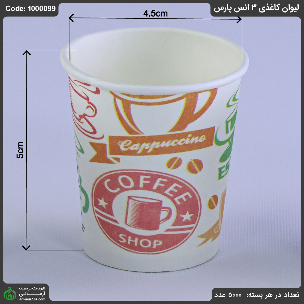 این لیوانها در بستهبندی کارتن 5000 عددی عرضه میشوند و گزینهای اقتصادی برای خرید عمده محسوب میگردند. اگر به دنبال خرید لیوان کاغذی قهوه باکیفیت، قیمت مناسب و ارسال سریع هستید، آرمانی بهترین انتخاب شماست.