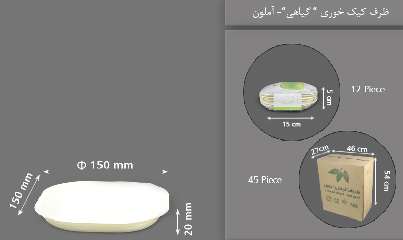 کیک خوری گیاهی – ظروف گیاهی یکبار مصرف آملون دارای مشخصات و نوع بسته بندی به شرح عکس ذیل می باشد :